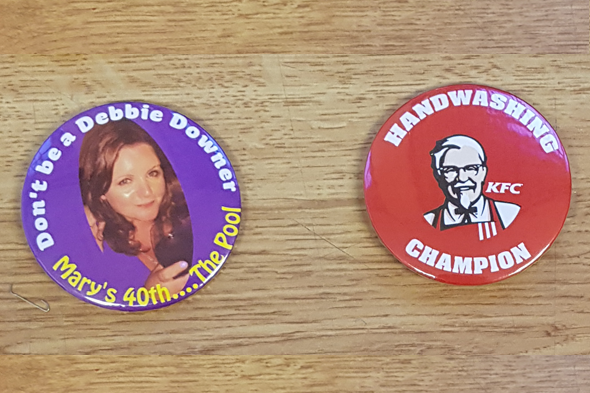 We specialise in fast turn-around and short orders, so last minute deadlines and events aren't a problem, and with our 'no minimum order' policy you can get professional button badges for any occassion in any quantity you require.