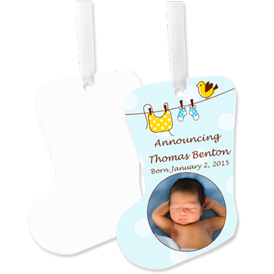Just in time for any holiday, these ornaments are delightful as a memory of their first Christmas. Sturdy, yet light in weight, they come packed with nice red ribbons for hanging.